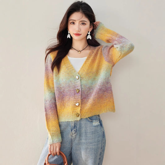 特價V領漸變愛心扣針織毛衣