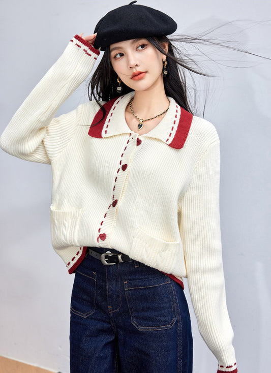 特價愛心扣雙口袋針織開衫毛衣