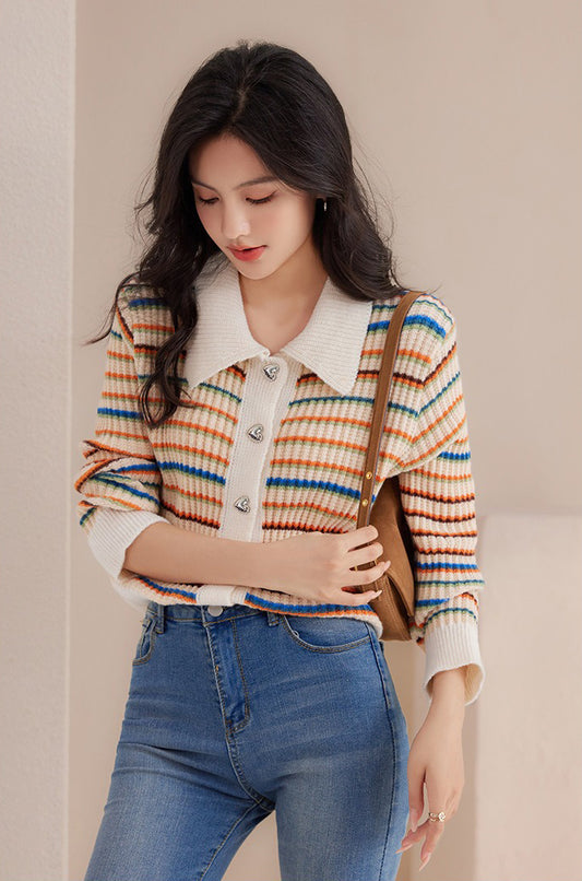 polo領愛心扣條紋針織衣