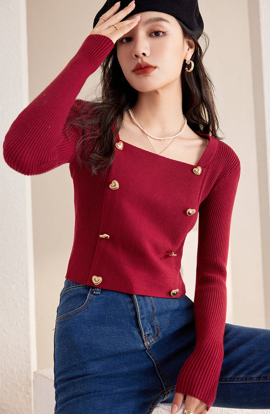 特價V領漸變愛心扣針織毛衣
