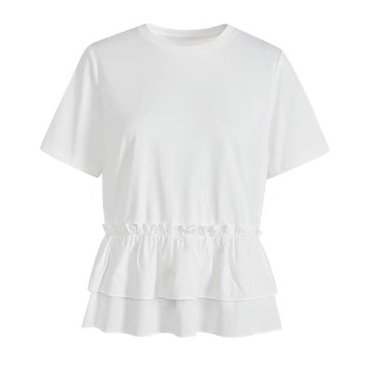 特價蕾絲拼接荷葉邊黑色襯衫