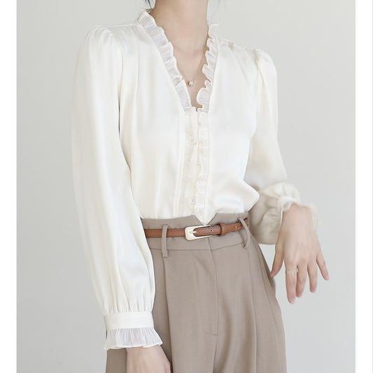 特價🔥珍珠鏈長袖緞面襯衫