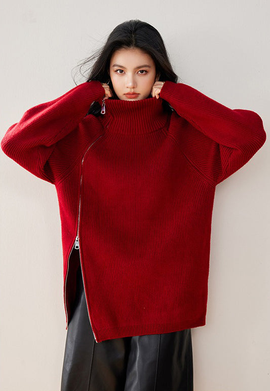 特價高領側拉鍊坑條針織毛衣