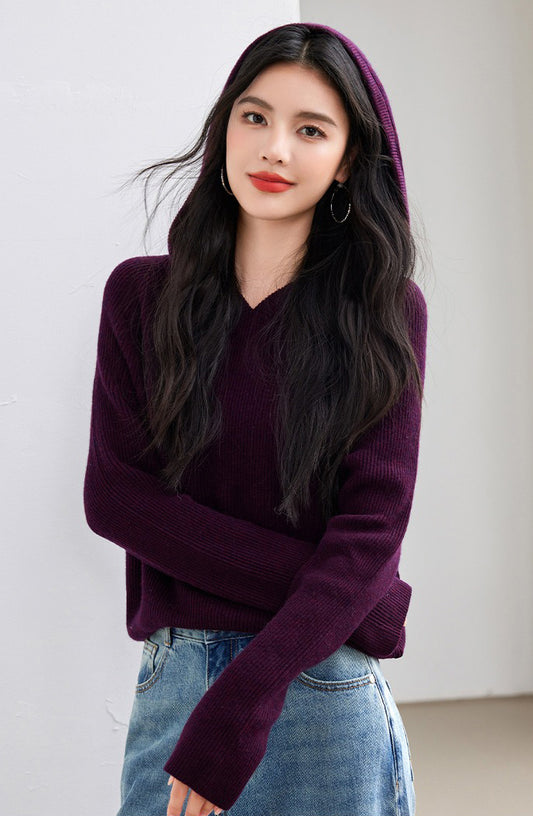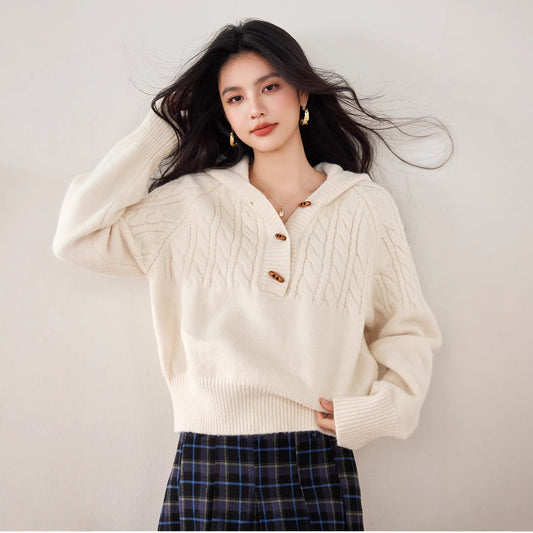 牛角扣連帽麻花編織針織毛衣