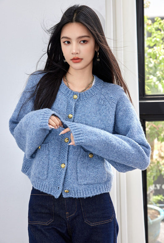 特價小香風金扣口袋開衫毛衣
