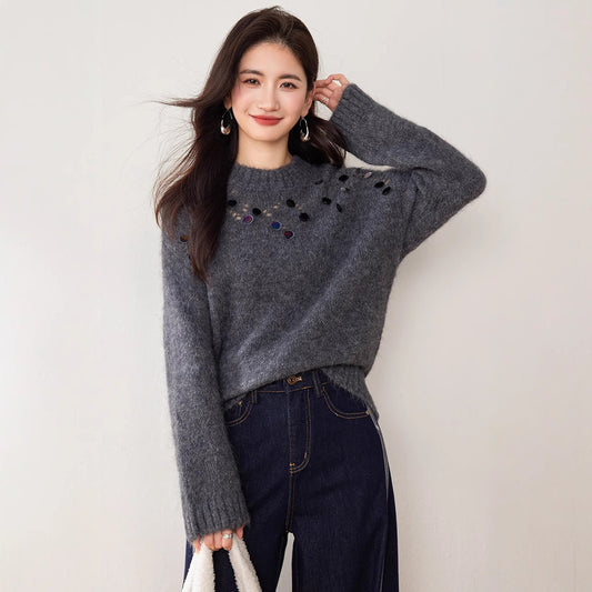 🔥小香風點點紗收腰針織毛衣