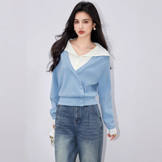 特價假兩件撞色海軍領針織衣