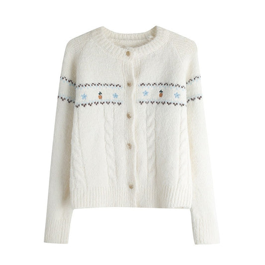 🔥小香風混色花紋開衫針織毛衣