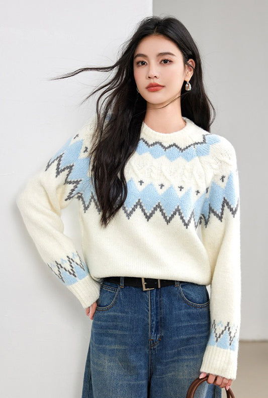 特價圓領幾何圖形針織毛衣