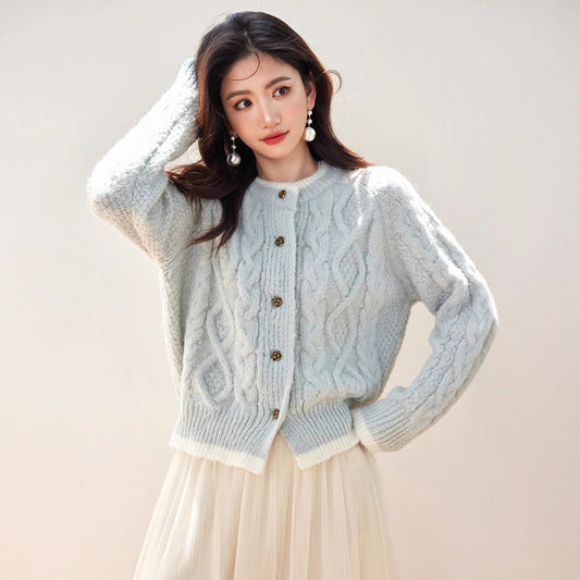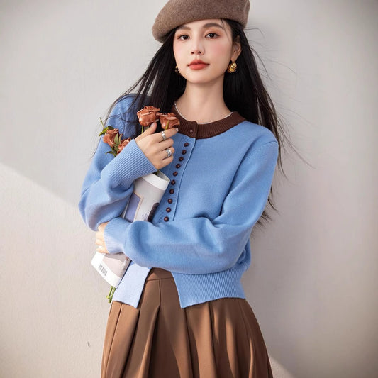 特價圓領單排扣撞色針織衣