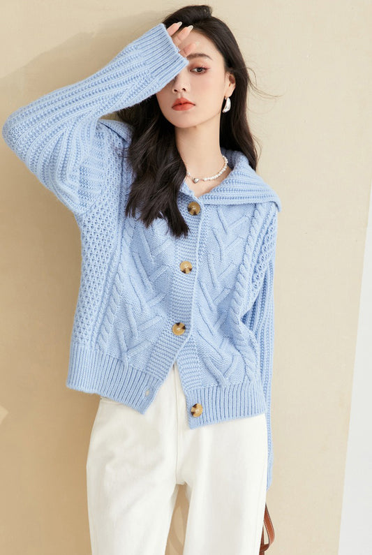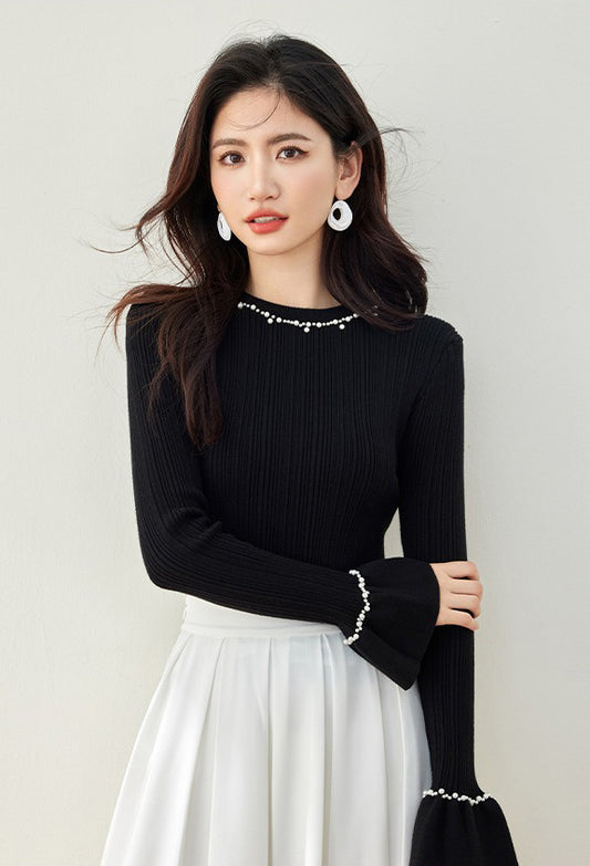 特價釘珠領喇叭袖針織毛衣