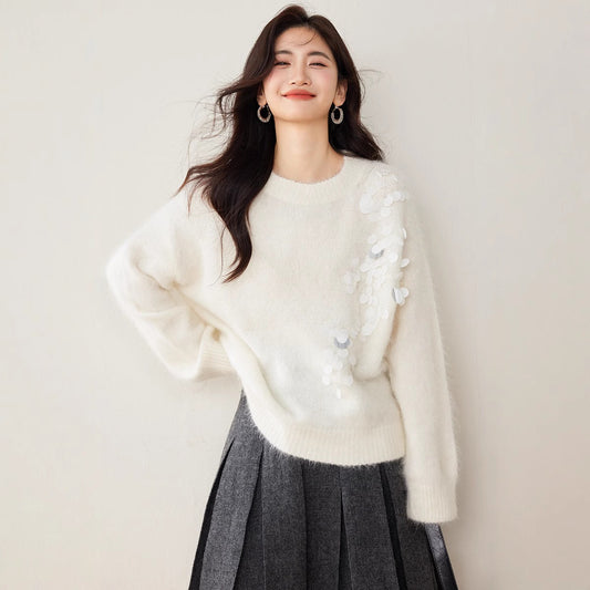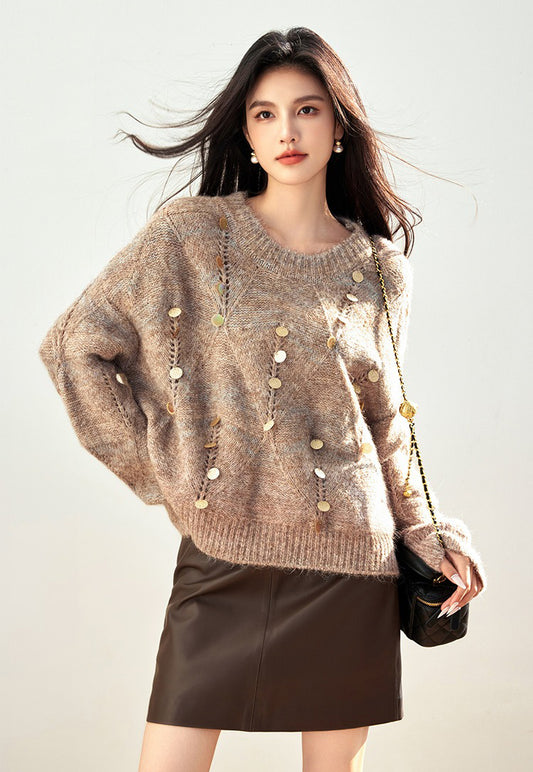 特價圓領羊駝毛亮片針織衫