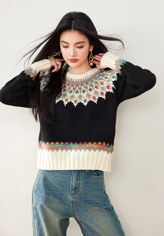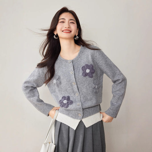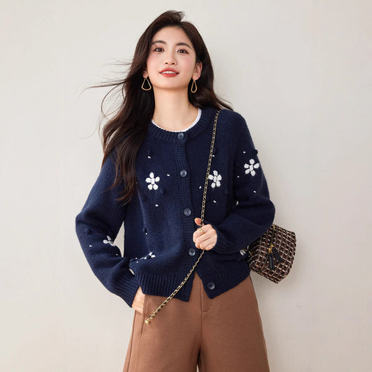 特價圓領小花刺繡針織毛衣