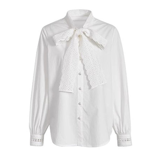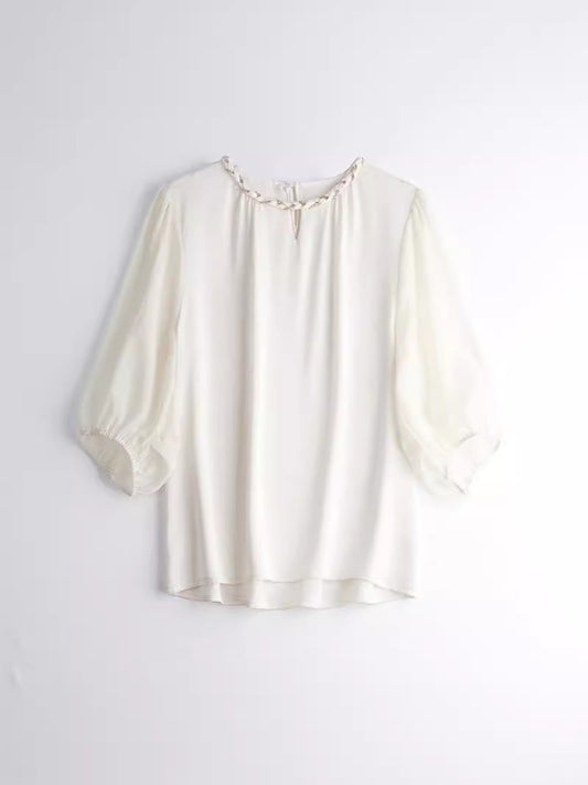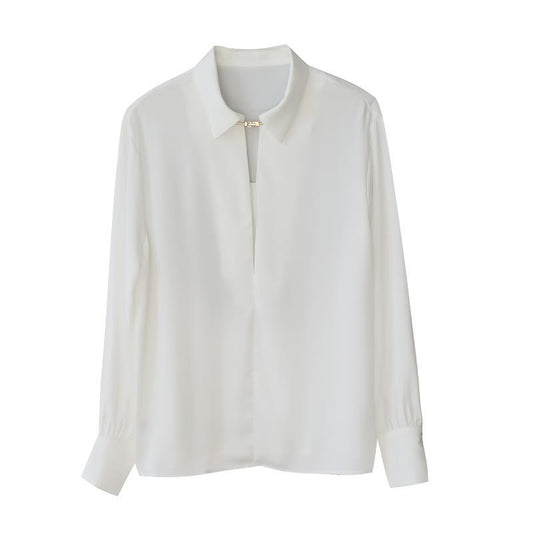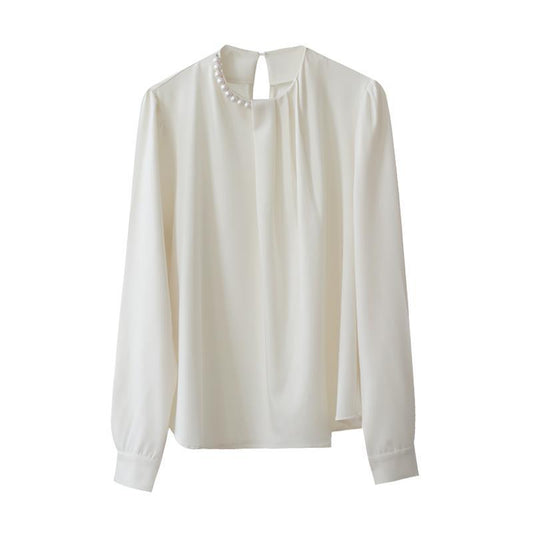 特價🔥珍珠鏈長袖緞面襯衫