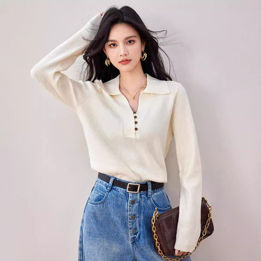 🔥Polo領拼接鈕扣針織衫