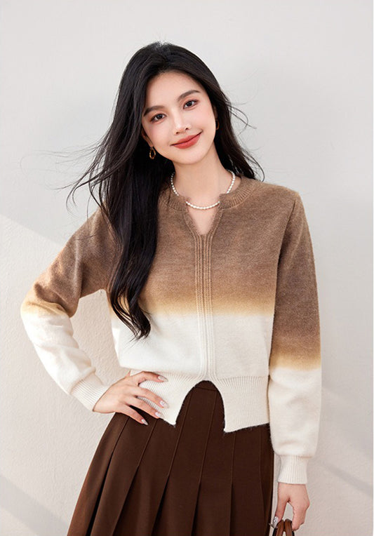 特價🔥V領漸層拼色針織衣