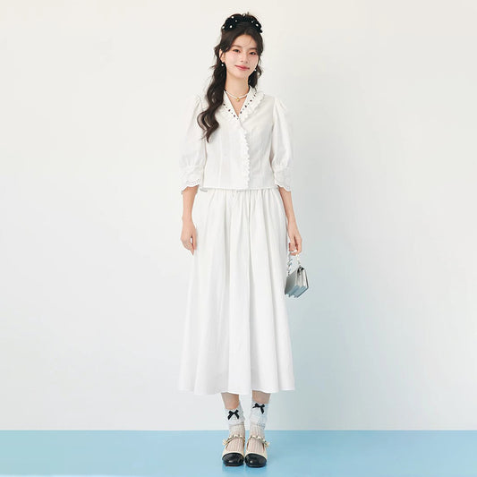 特價🔥娃娃領蕾絲邊七分袖襯衫