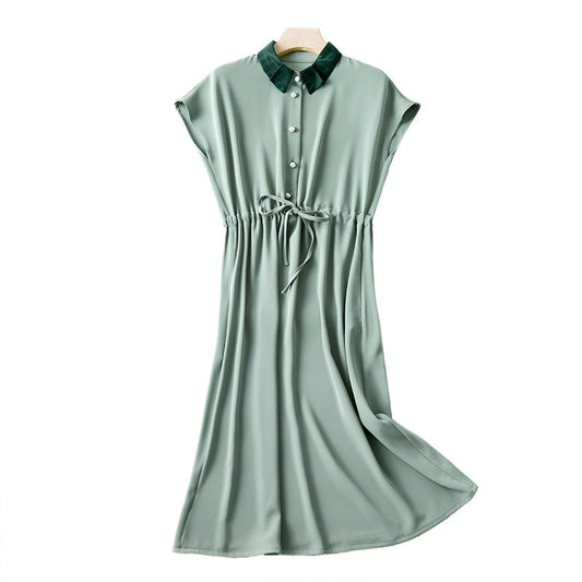 🔥娃娃領珍珠扣收腰抽繩洋裝