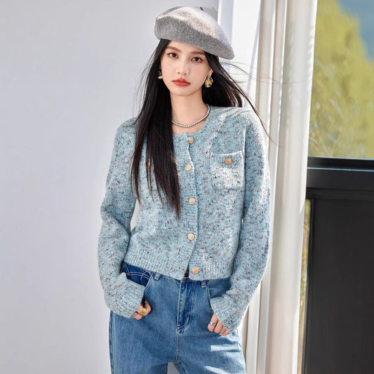 🔥小香風混色花紋開衫針織毛衣