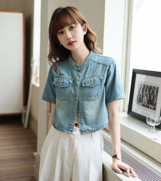特價圓領金色排扣牛仔外套